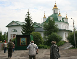 Das Kloster der Gewandniederlegung der Gottesmutter wurde 1207 errichtet. Hauptsehenswürdigkeit ist das rot-weiße Heilige Tor von 1688, mit bunten Kacheln verziert und unterschiedlich großen Torbögen. Die ebenfalls der Gewandniederlegung der Gottesmutter geweihte Kathedrale stammt aus der ersten Hälfte des 16. Jh. |
