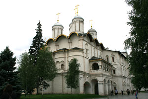 Das prachtvolle Gotteshaus ist das älteste Gebäude im Kreml. 1562 wurde die unter Iwan dem Schrecklichen errichteten Holzkirche durch den heutigen Steinbau nach den Plänen der Baumeister der Moskauer Basilius-Kathedrale ersetzt. |